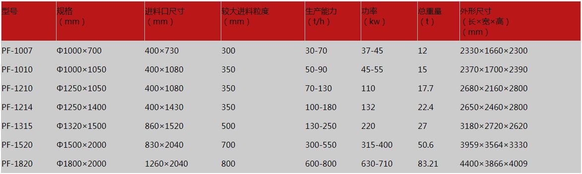 反擊式破碎機(jī)參數(shù)