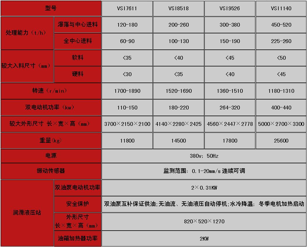 沖擊式制砂機(jī)技術(shù)參數(shù):